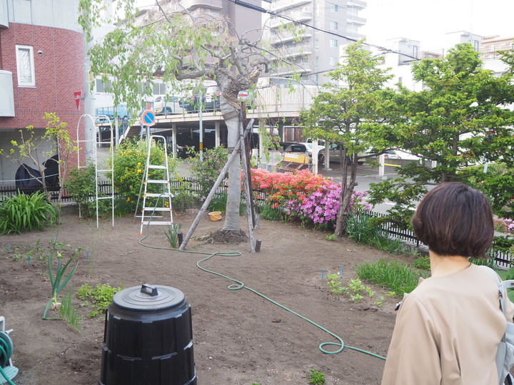 庭の空きスペースは、夏に向けて家庭菜園を作る予定です。季節を問わず、コンポストで作った堆肥を土に混ぜ、エコライフを実践しています。