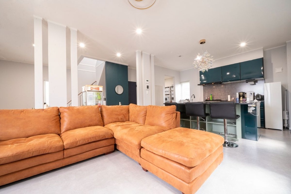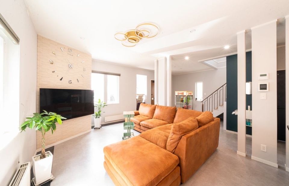 Sさん夫婦の一番の希望は、広いリビングでした。ポイントは仕切りとなる壁や扉が一切ないこと。