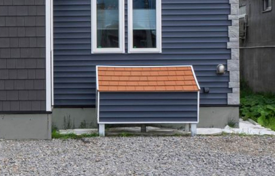 オーナーのSさんもスキルを活かし、自宅の外壁を自ら施工しました。玄関横のごみ置きも外壁と同じ素材でSさんが施工したもの。家の外観とバッチリ調和しています。