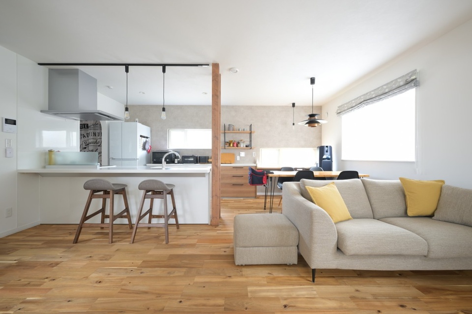 オープンタイプのキッチンを中心にした開放的なLDK