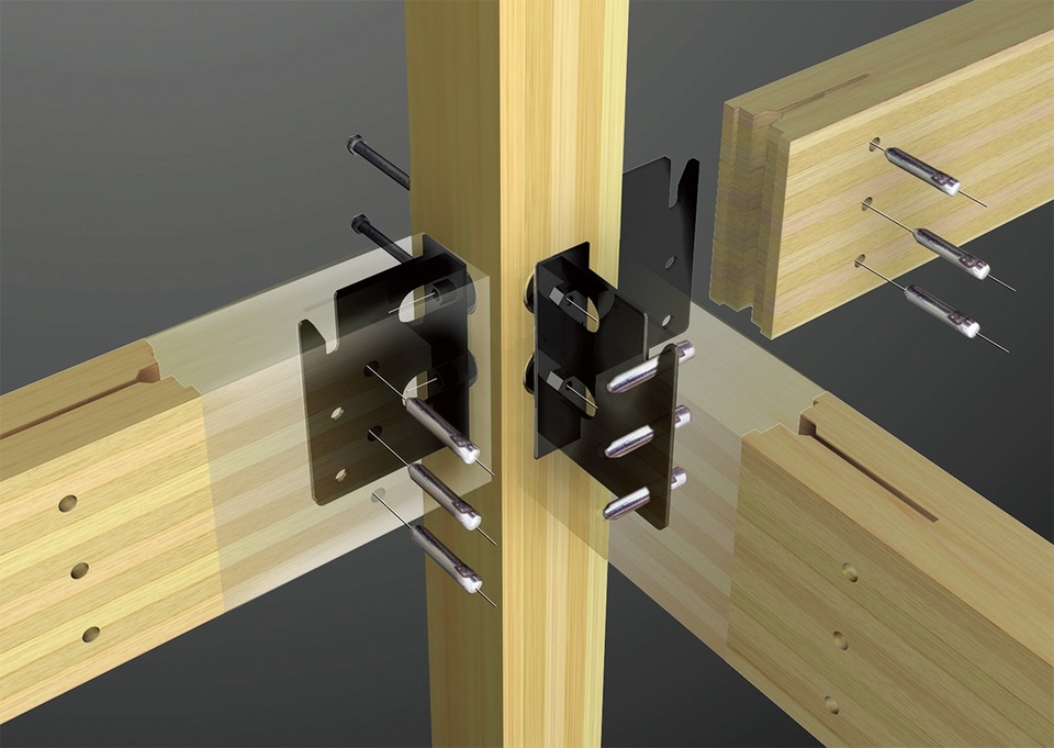 SE構法では「ほぞ」穴を開けることなく、頑丈なボルトやドリフトピンといった特殊金物で強固に接合するため、「連続した揺れ」にも強いという結果が出ています。
