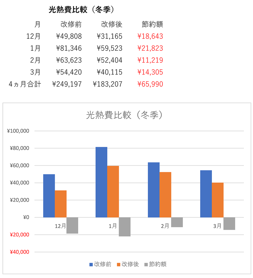 厳寒期4ヵ月合計でみると節約額は6万5千円ほど。これはなかなかの節約効果ですね。