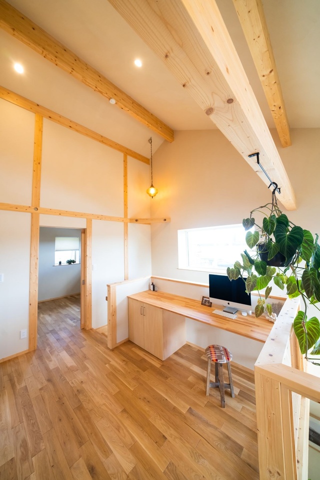 階段を上がると広めのホールがあり、家族のだれもが使えるよう共有カウンターを設けました。