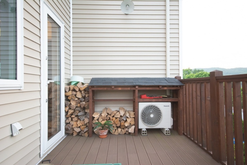 リビングにはバルコニーも併設されています。家庭菜園用の苗を育てたり、薪ストーブ用の薪を保管する以外に、このバルコニーには大きな良さがあります。