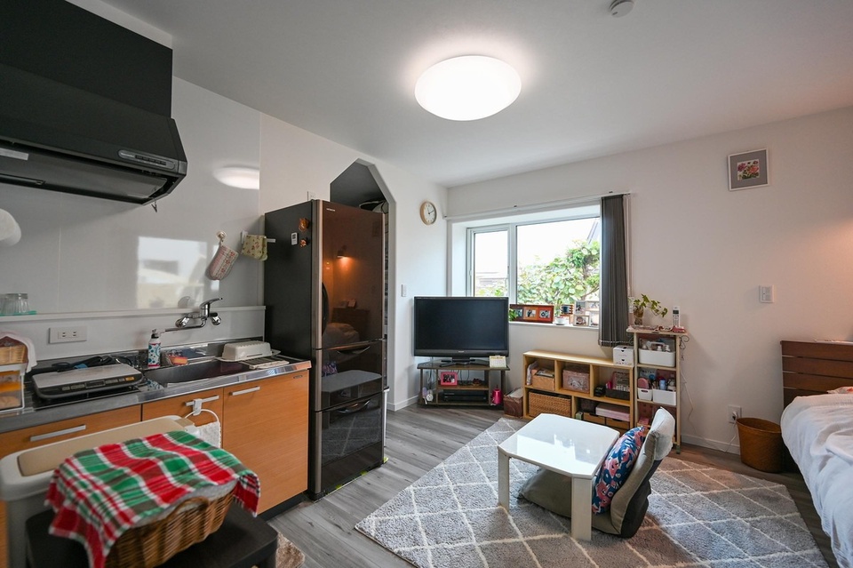 1階にはリビング・ダイニングや水回りなどのほかに、お母さまの部屋があります。ミニキッチンを付け、南東向きで日当たりがよいことにとても満足されています。