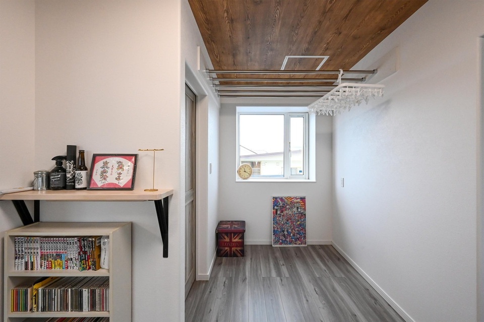 2階ホールは洗濯物を干す場所としても活用しています。窓からは海を一望でき、夏は花火を観るための特等席になるそうです。