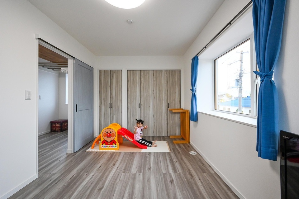 光輝建設が推奨する、外壁の断熱が一般的な住宅の4倍厚い「4倍断熱」を採り入れ、暮らしやすさを最優先したうえで、内外観のデザインを色とクロスで遊ぶことにもこだわりました。カラーコーディネートはすべてSさんによるものです。