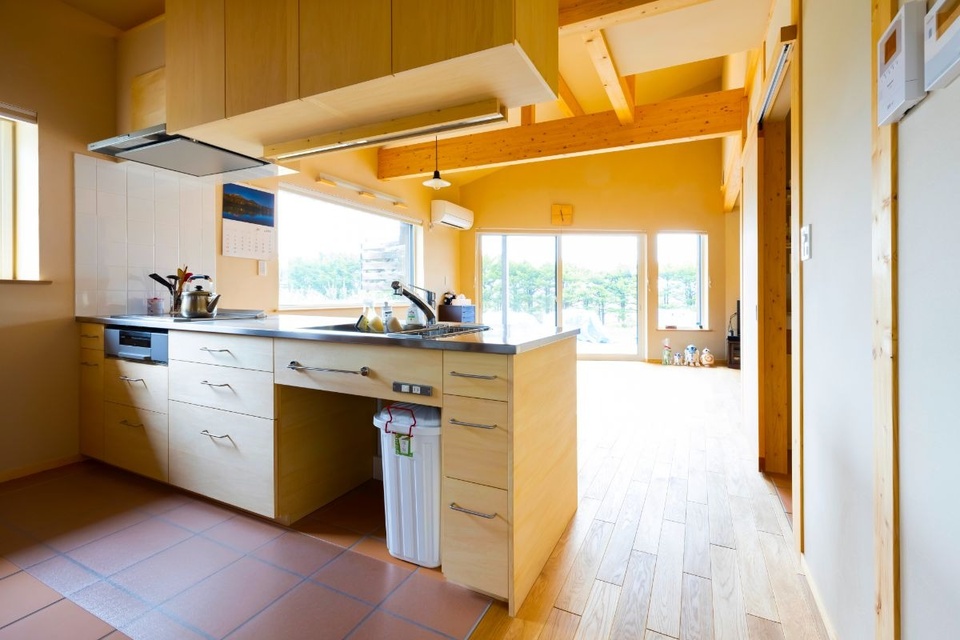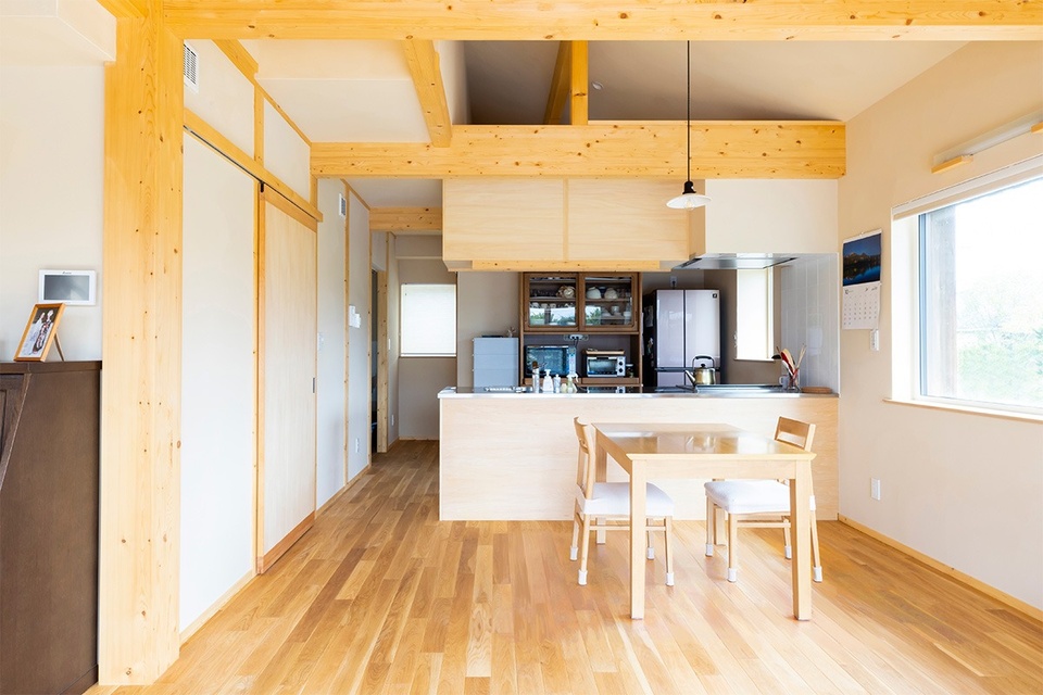 「木がふんだんに使われていて、冬でも暖かく、藤井さんの熱意、価格の面なども大変魅力的でした。友人宅の基礎、大工工事なども全部リアルタイムで見学できました。工事中の現場内でも化学物質のにおいなどがしなくて、そういう面でも安心でした」とご主人は振り返ります。