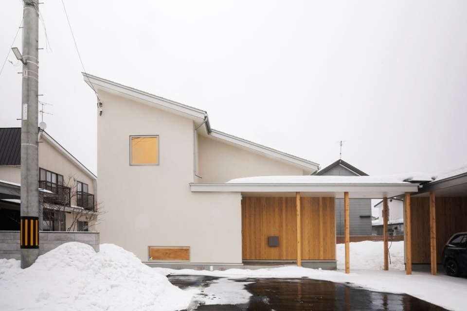 S邸の白く美しい外壁も、ホタテの貝殻を焼成して作られた「ホタテ漆喰」を採用しています。上品できめ細かい質感や光沢といった美観の面、そしてひび割れ(クラック)が起きにくい、抗カビ・抗菌性能、強度や耐久性にも優れています。そして廃棄処分にされていたものを再利用できるというエコの観点からも魅力的な外壁材です。