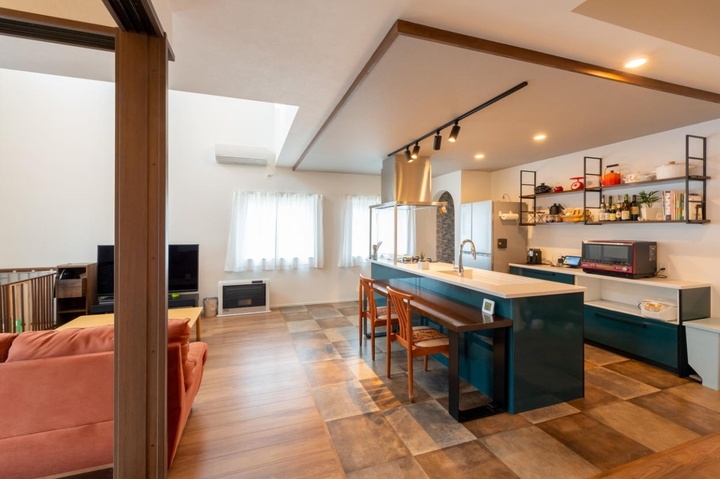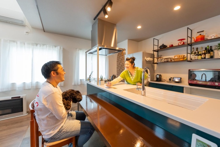キッチン選びでは、あらゆるメーカーのショールームを回り、性能面などを吟味したというIさん夫婦。「ホーロー製で傷つきにくく、汚れがふき取りやすくお手入れしやすい」(奥さま)という点に魅かれてタカラスタンダート製を選びました。ショールームで一目惚れしたブルーグリーンが部屋の雰囲気にぴったりマッチしています。