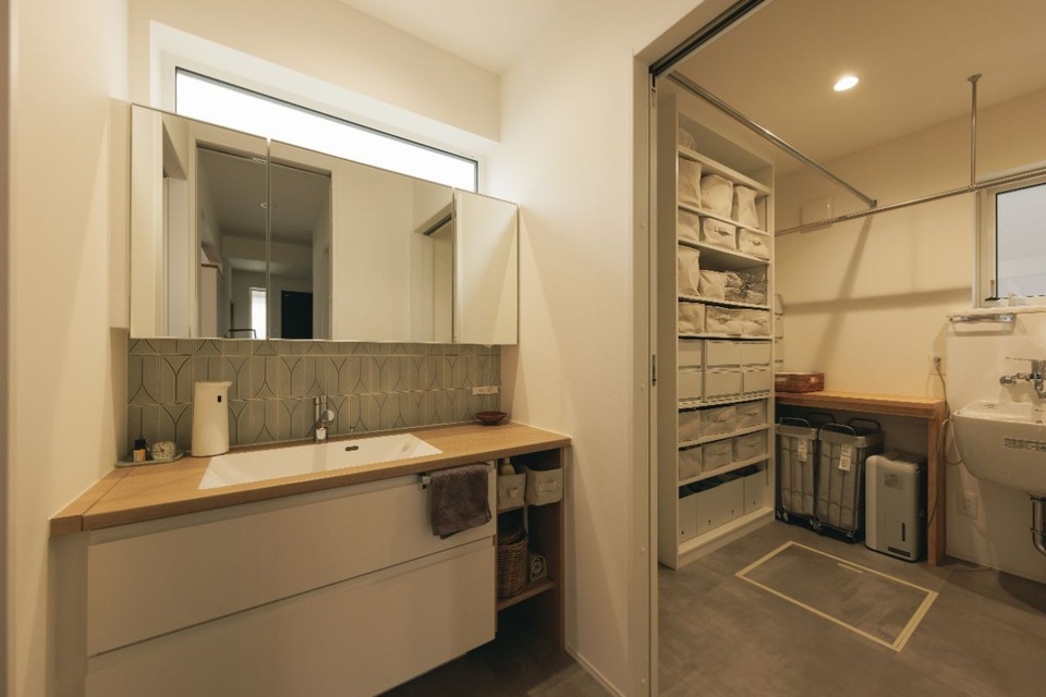 脱衣室から独立した洗面スペース。家族が浴室を利用している時でも洗面台が使えるのでとても便利です。
