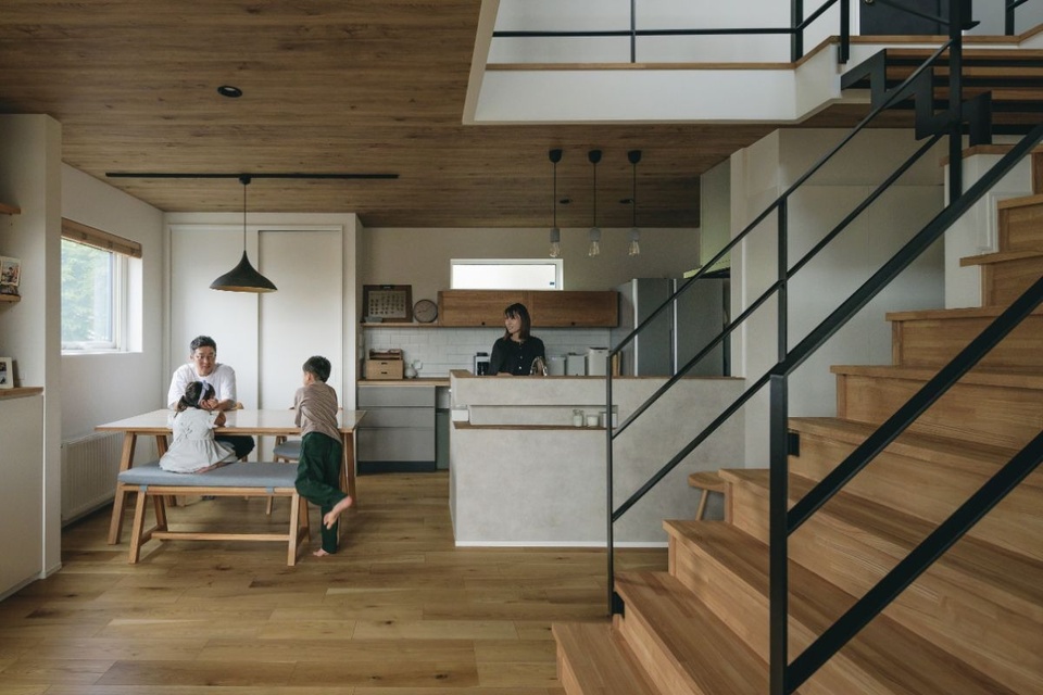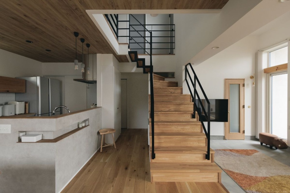 お子さんが成長しても家族が顔を合わせる機会を大切にしたいという思いから、階段はLDKの中央に配置しました。