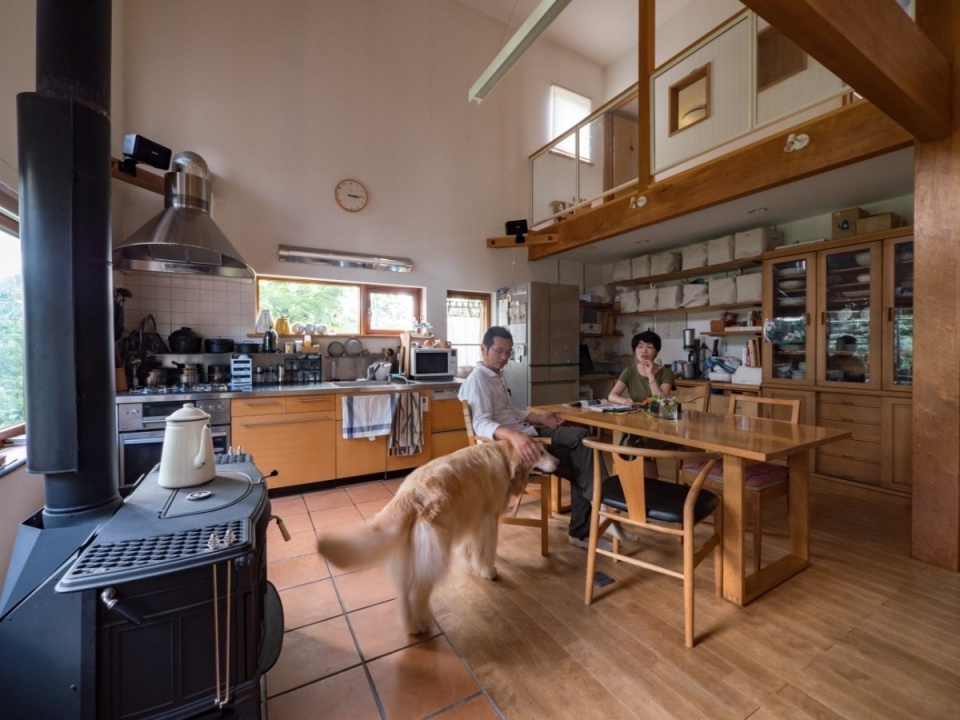 記者「リビングに薪ストーブがありますね。薪ストーブの魅力は何ですか?」