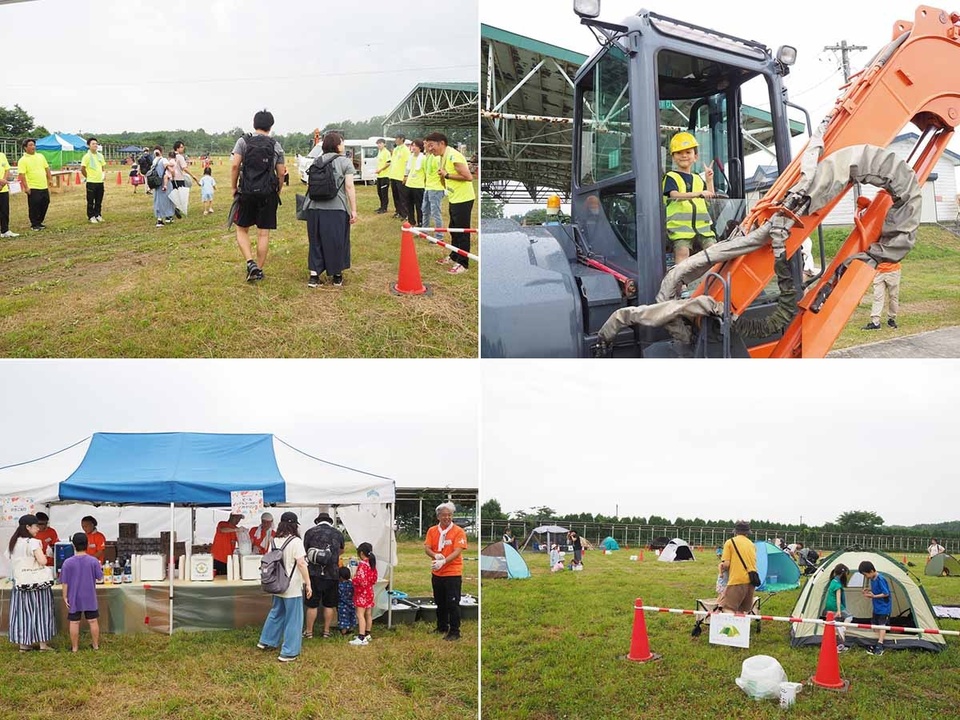 この日はあいにくの雨模様にも関わらず、開場前から多くの人が訪れていました。受付では会場MAPとチケットが配布されます。キクザワスタッフと関連業者さんが協力して、お客さまをお出迎え。入口すぐには「働く車」が展示されていて、試乗してピースサインをくれた男の子も。小さなお子さん連れの方に嬉しい、テントブースも用意されています。