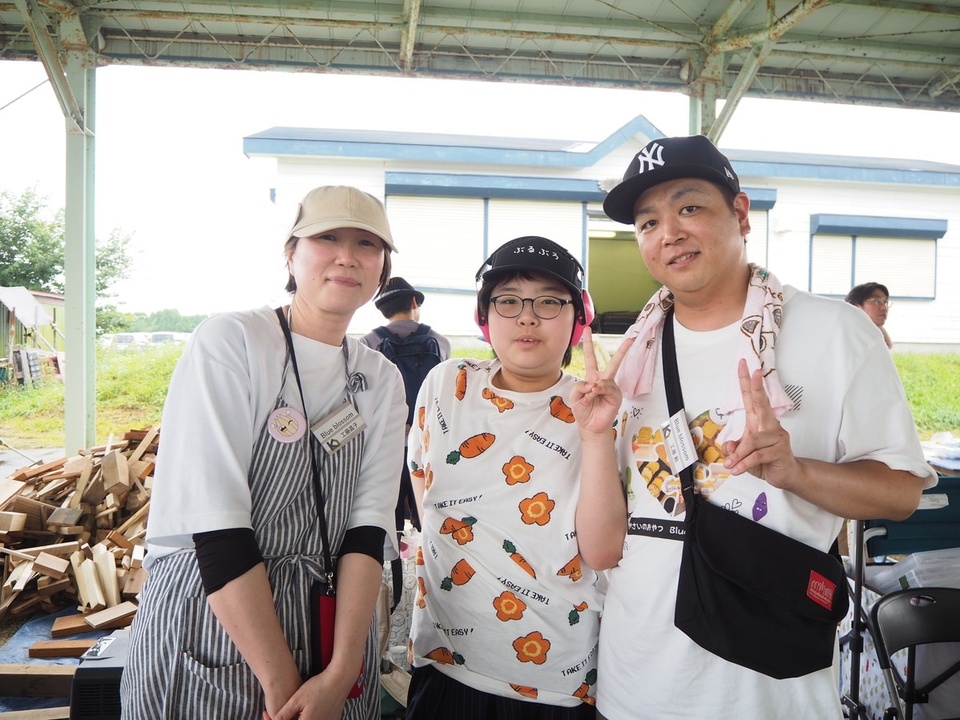 大きな屋根下の会場では、キクザワ恵風会が主催するワークショップや縁日が人気です。タイルトレイや手形アート、サイコロカレンダーなどの木工小物も作れます。このワークショップは、4月に入社した新入社員の2名がメインで企画し、準備を進めてきたコーナーなのだそう。夢中になって参加する子どもたち。自由研究にもピッタリですね。
