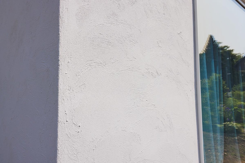 外観は内装の雰囲気と合わせ、白の塗り壁とシルバーの屋根で仕上げました。