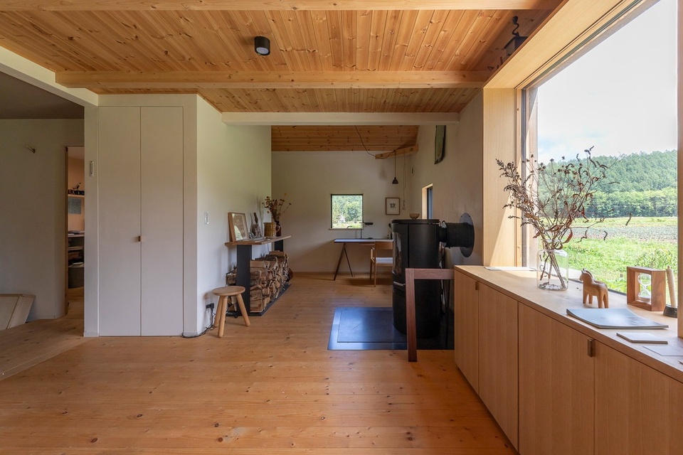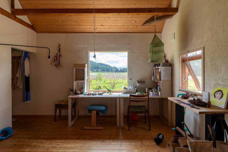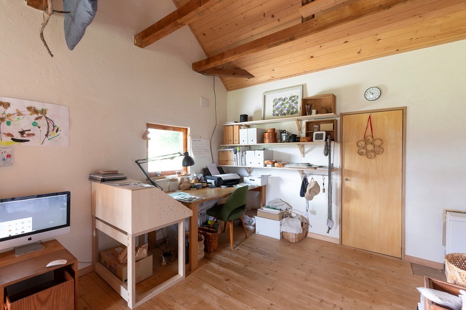 東京から通いながら、友人や仲間と共に躯体以外のすべてを取り外して補強し、断熱材を入れ、床を貼り替え、完成したのは2018年。暫くはアトリエとして利用し、冬季に留守にする間は蓄熱暖房機を弱小にして凍結を防いでいたそう。その後、家族と共に移住し、現在は自宅として使っています。