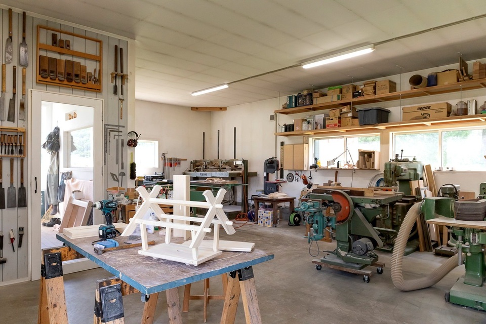 工房に足を踏み入れると、家具製作に必要な機械類が並んでいました。