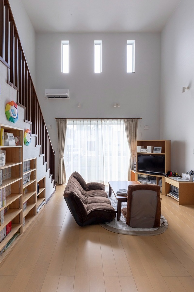 家族それぞれの個室と、吹き抜けのリビングがあることで、一人で寛いだり、集中した作業ができる空間と、家族が一緒に過ごす空間の両方ができ、ちょうど良い距離感とコミュニケーションが生まれています。