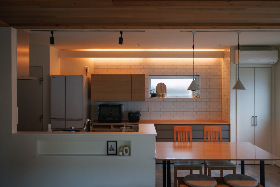 夜はLDKを間接照明だけにすることも多く、穏やかでリラックスできる時間を過ごしていると話します。