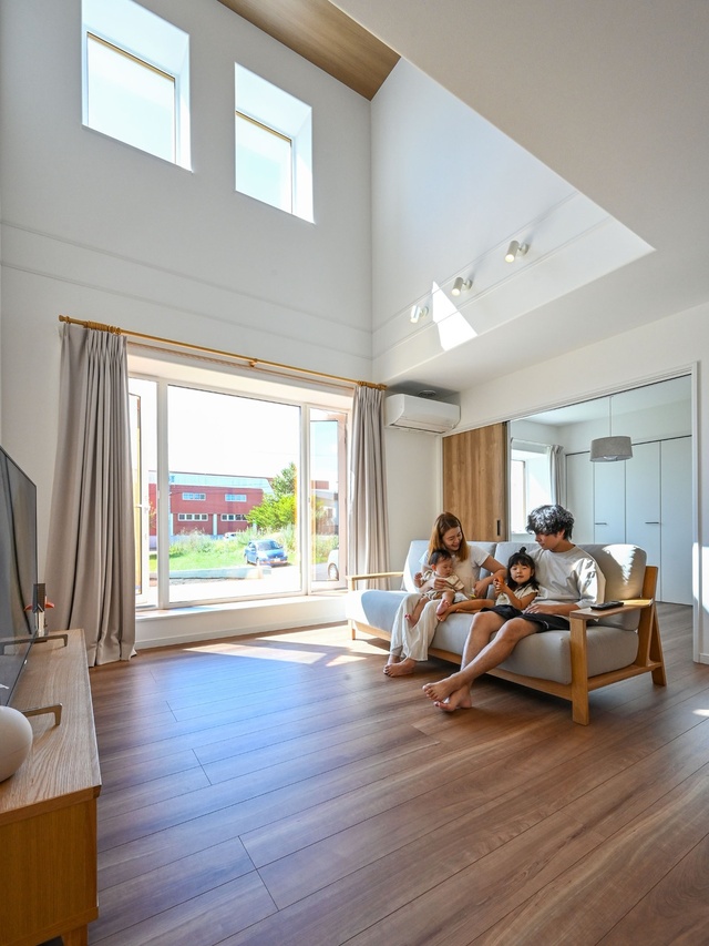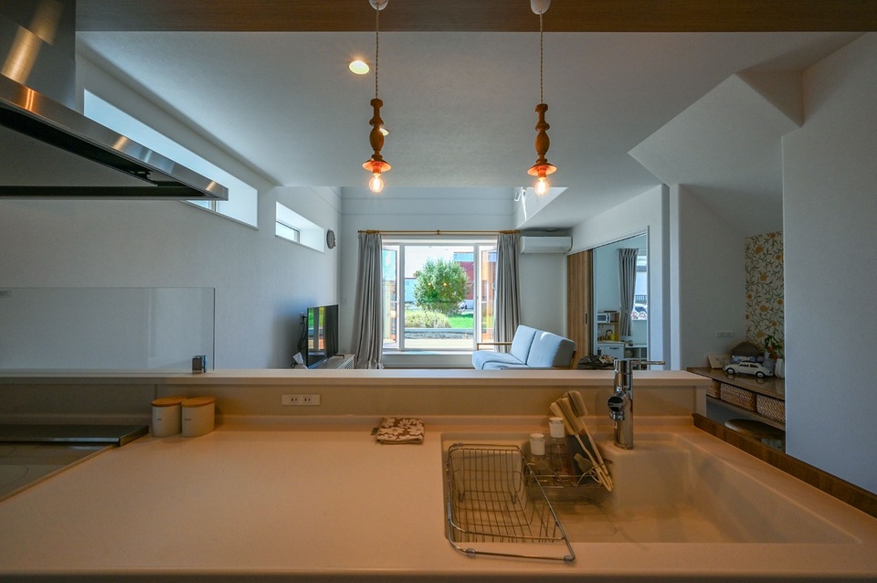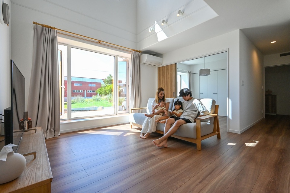 性能面でも光輝建設が推奨する4倍断熱(外壁断熱厚が400mm)と、地熱を利用し熱回収も行うオリジナル換気システム“スーパー澄家”によって、住み心地はとても快適。まだ最初の冬を迎える前ですが、暮らし始めてから何日かあった暑い日も、エアコンを27℃設定で運転すればすぐに過ごしやすい室温になるなど、高い断熱性能の恩恵はすでに実感済み。窓を開ければ風も良く抜けると言います。