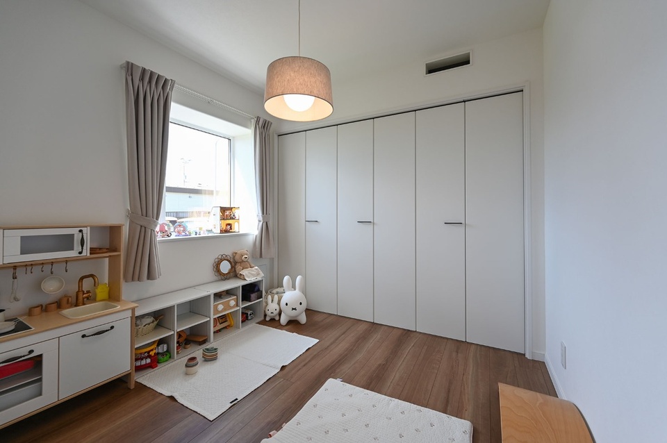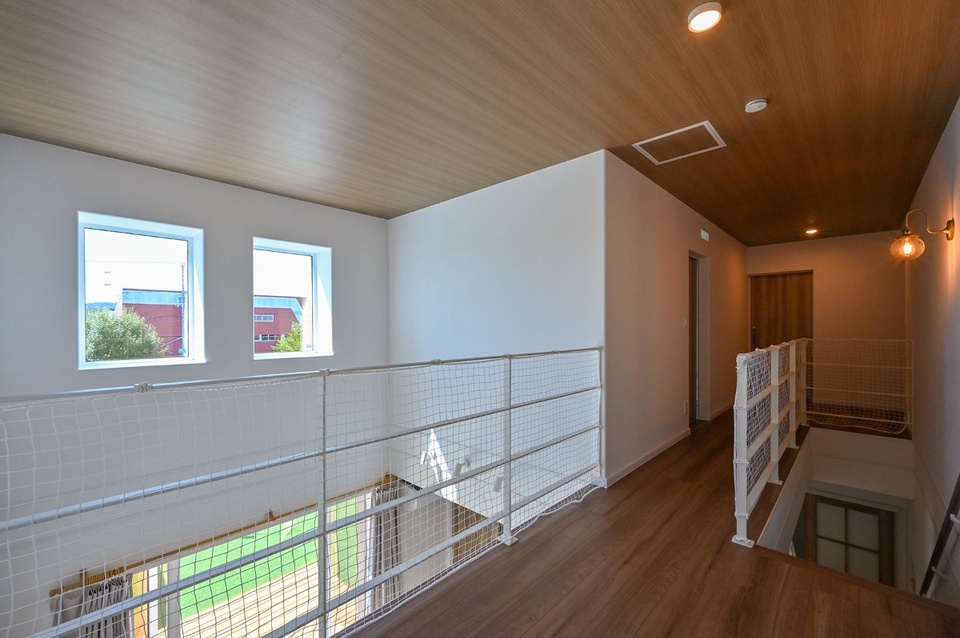 2階は、主寝室と2つの子供部屋、トイレで構成。各部屋はいずれもウォークインクローゼットが備わっており、収納力は十分。ホールから吹抜けを見下ろせば、リビングにいる家族とコミュニケーションを取ることも簡単です。