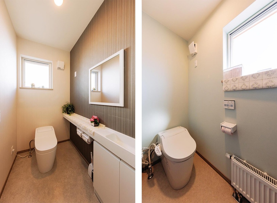 ガレージ近くの1階トイレと、LDK近くの2階トイレ。