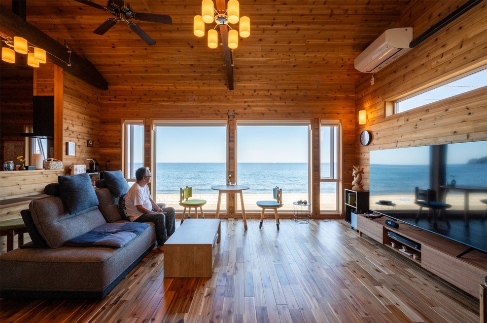 生まれ育った街で、オホーツクの海を眺めながら暮らしたい―。そんな想いで現在新潟に居を構える鈴木さんが、オホーツク海のすぐ側にセカンドハウスを完成させたのが2022年の秋。今では毎月のように訪れ、木の温もりに満ちた部屋から窓の外に広がる大海原の風景を楽しんでいます。