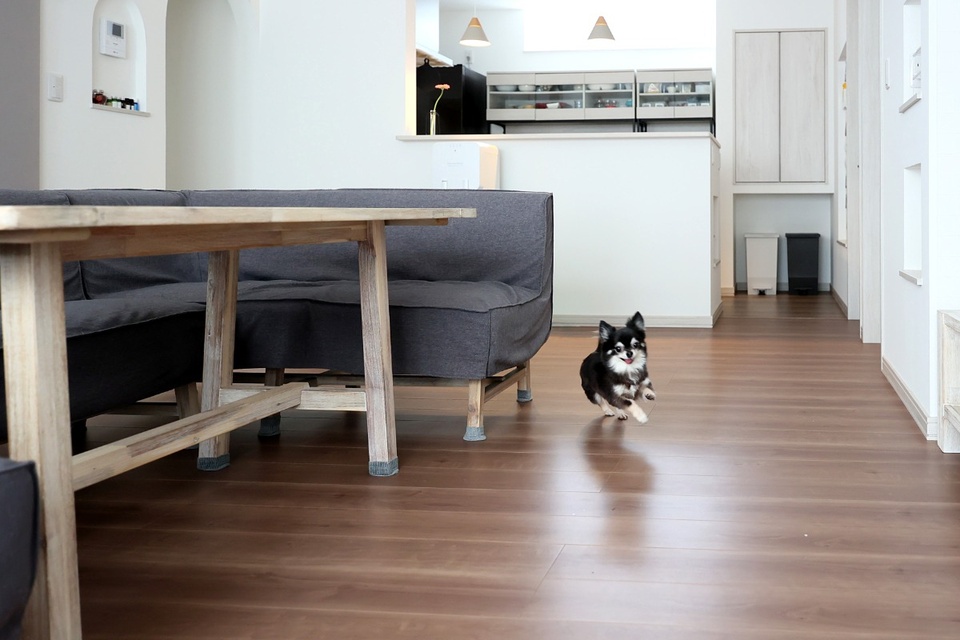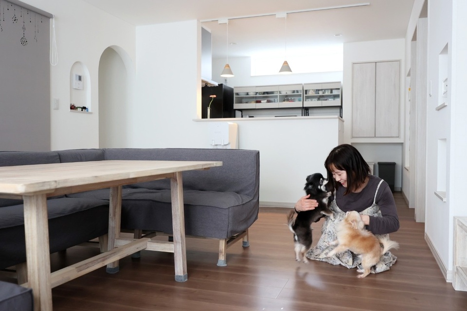 「引っ越しして2年が経ちますが、夏も冬も室温と湿度が心地よくて快適です」と話すK夫妻に、9カ月、3歳、5歳の娘さん、わんちゃん2匹と暮らす平屋の家を見せていただきました。