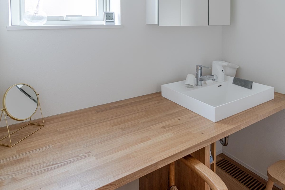 ・洗面台については、洗い物もしたいので深い洗面ボウルで、しかもアイロンやメイクもできるし座れるようにしたい