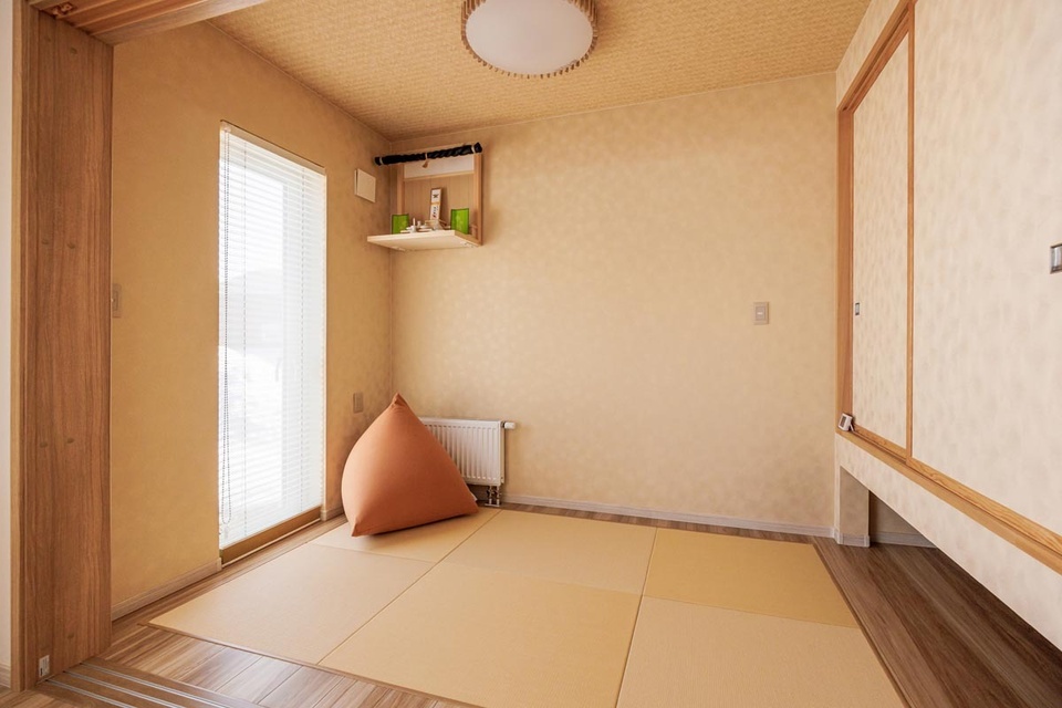 リビングと扉一枚でつながっている和室は、お子さんのお昼寝や遊びにも便利なスペースになりました。