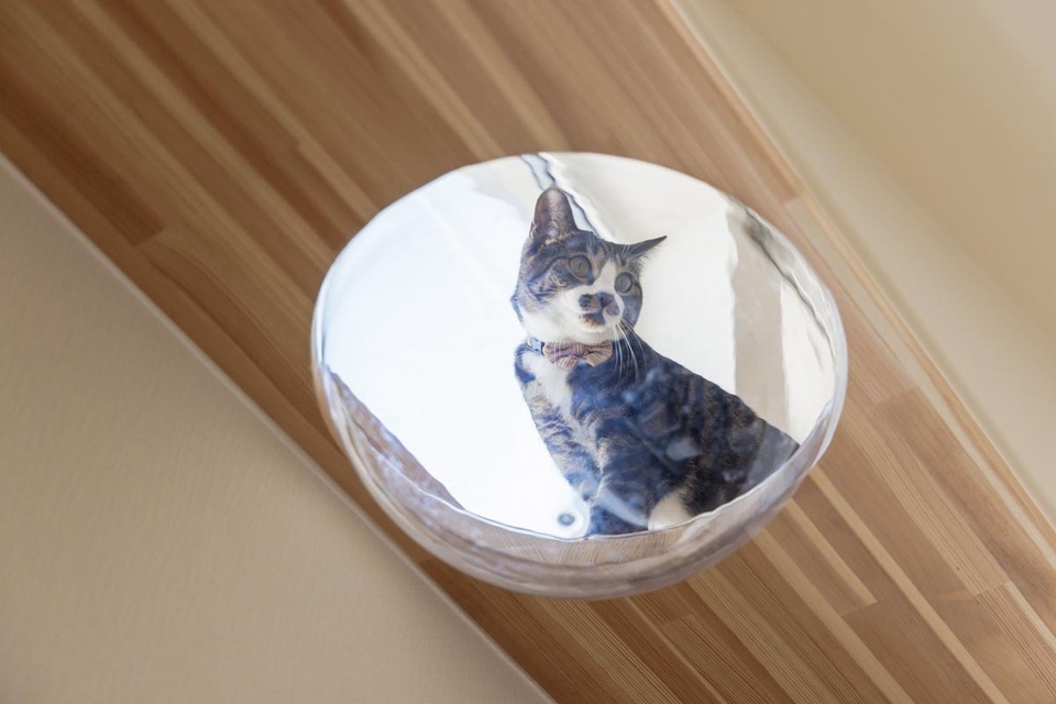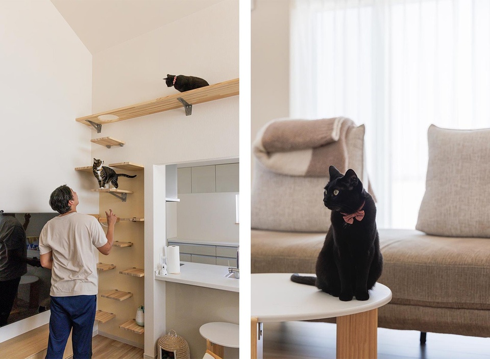 「階段前に扉をつけて猫エリアも1階に限定したので、広い家でも長く一緒に過ごせるようになっています」