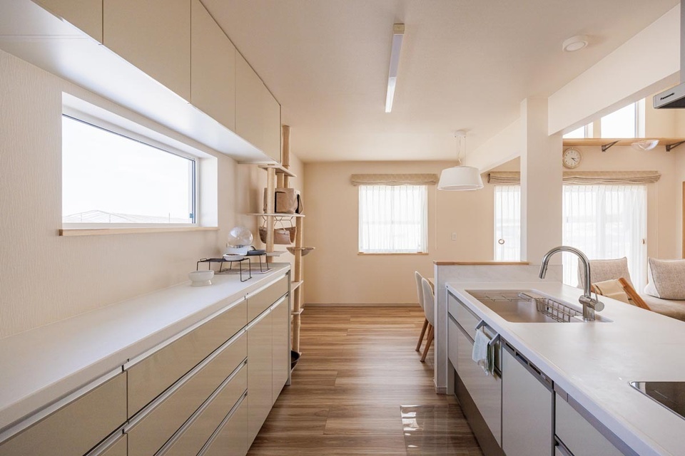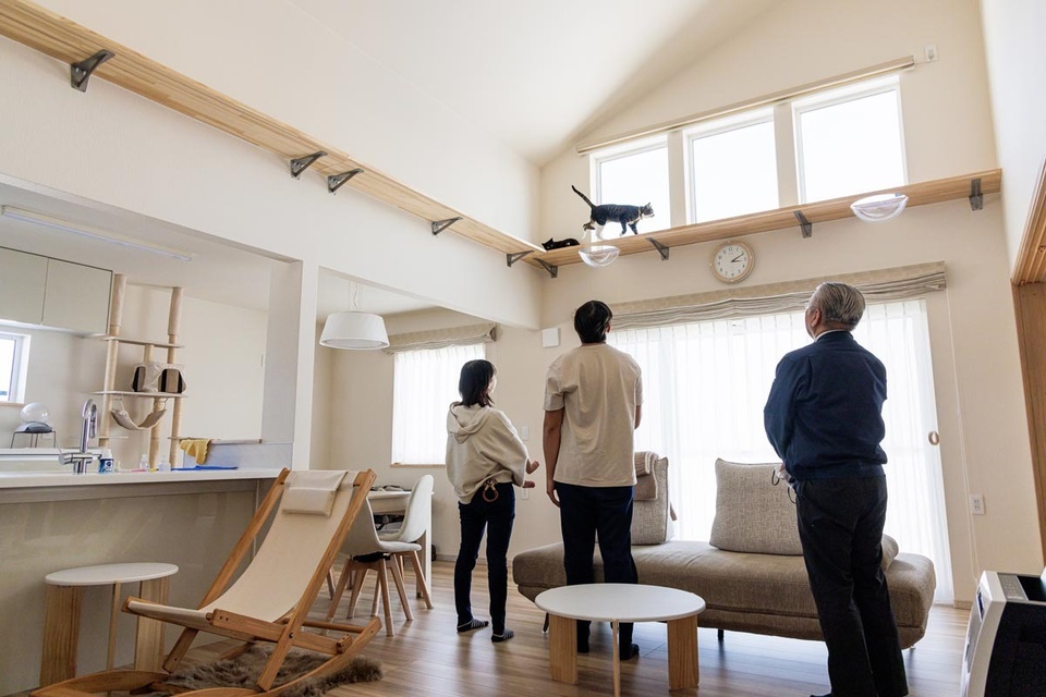 「猫たちはすぐ慣れて、キャットウォークも毎日駆け回っています。床暖房も気に入っていますね。家族全員がリビングで一緒に心地よく過ごせるようにと思っていたので、嬉しいです」