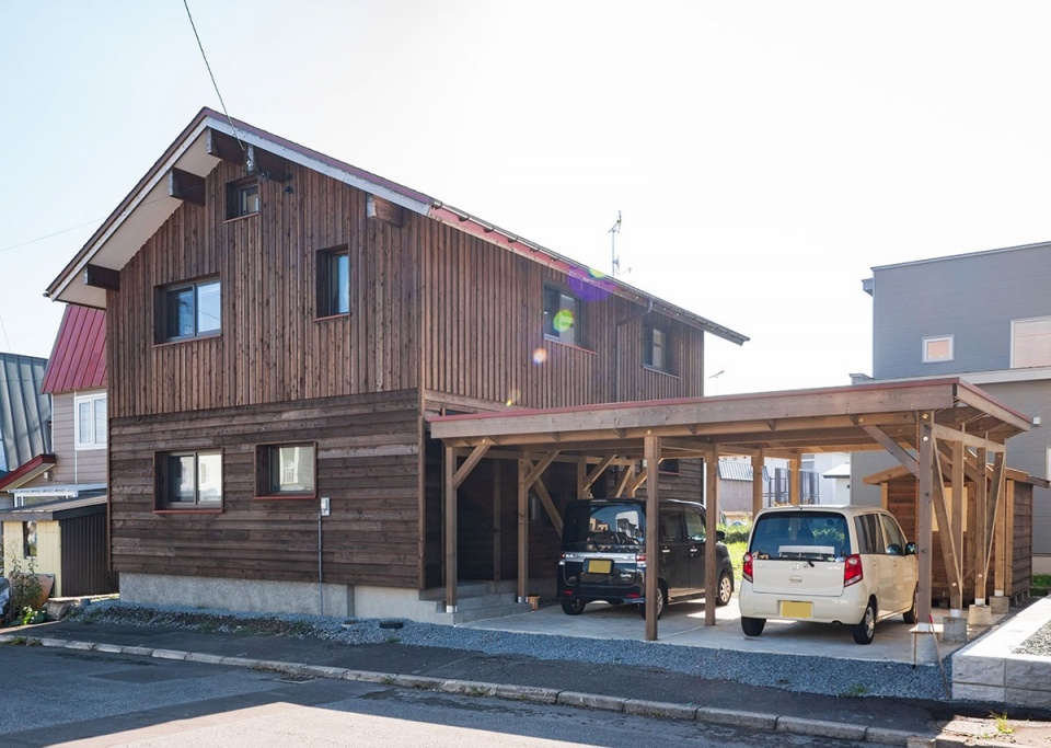 車2台が余裕で収まるカーポートも建物本体と統一感のある造り。降雪量の多い旭川ですが、雪の重みにもしっかりと耐えられます。
