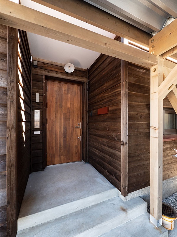 家づくりに使う材料についてうかがうと「本物にこだわり、できるだけ北海道産の材料を使っています」と藤井さん。外壁には節が抜けない、丈夫で固い道産カラマツを採用。自然素材からできた防腐剤で仕上げており、木の表面が時と共に深い茶色に変化していく様子も、本物の板壁ならではの味わいです。