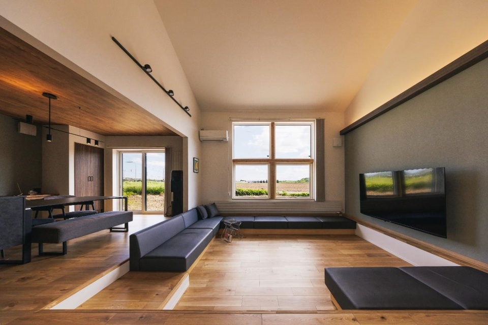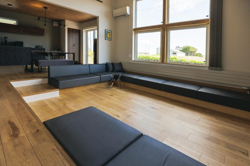 ご夫婦共通の友人が集まるという広々としたダウンフロアリビングで「会社選びに迷いはなかった」と語ってくれたのは音更町で畑作を営むYさんです。設計を担当したクリプトン専務・古市淳也さんへの信頼は深く、安心感の中での家造りとなりました。美しく暮らしやすい農家住宅をご紹介します。