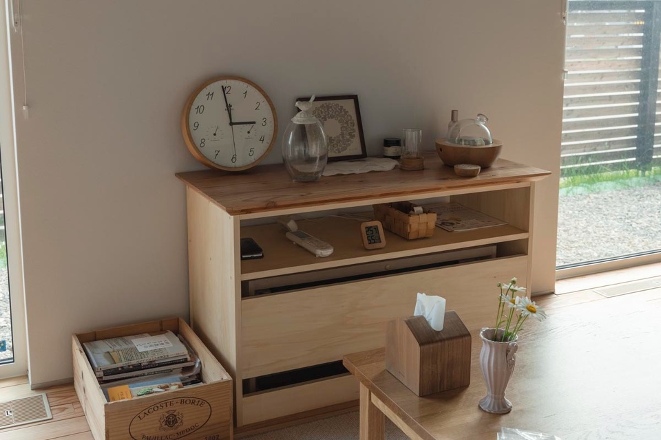 最初は中古物件を購入してリフォームしようかと検討していたんです。水野建設は木をふんだんに使った家の雰囲気と自然素材を使っている点に惹かれました。このミニマムスタイルの家はシンプルな平屋建てで、年を重ねても生活しやすそうな点もいいですよね。結局、リフォームは高額になる場合もあることを考え、新築で建てることに決めました。