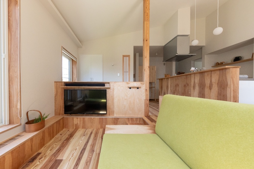 スキップダウンフロアになったリビング。