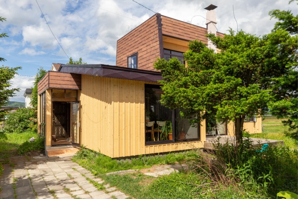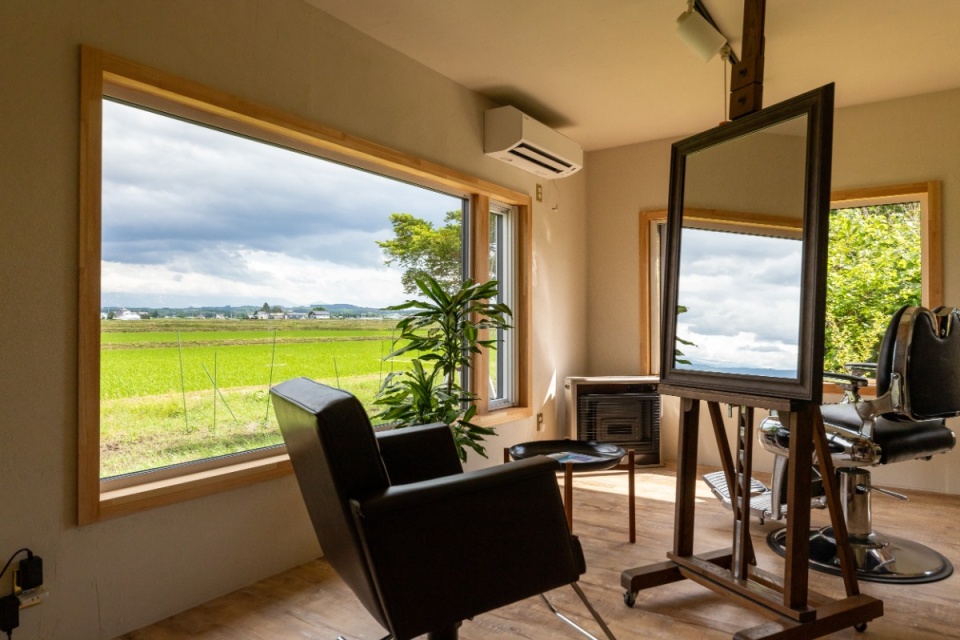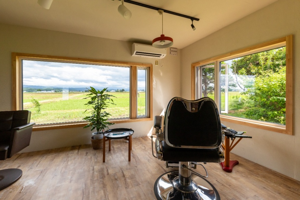 東川町のWさんは、2018年に雅建築企画の設計・施工でマイホームを新築後、2024年春に、隣接する以前の住まいをフル・リフォームして店舗に改装し、ご夫婦それぞれがヘアサロン(美容室)とアロマサロンを営んでいます。
