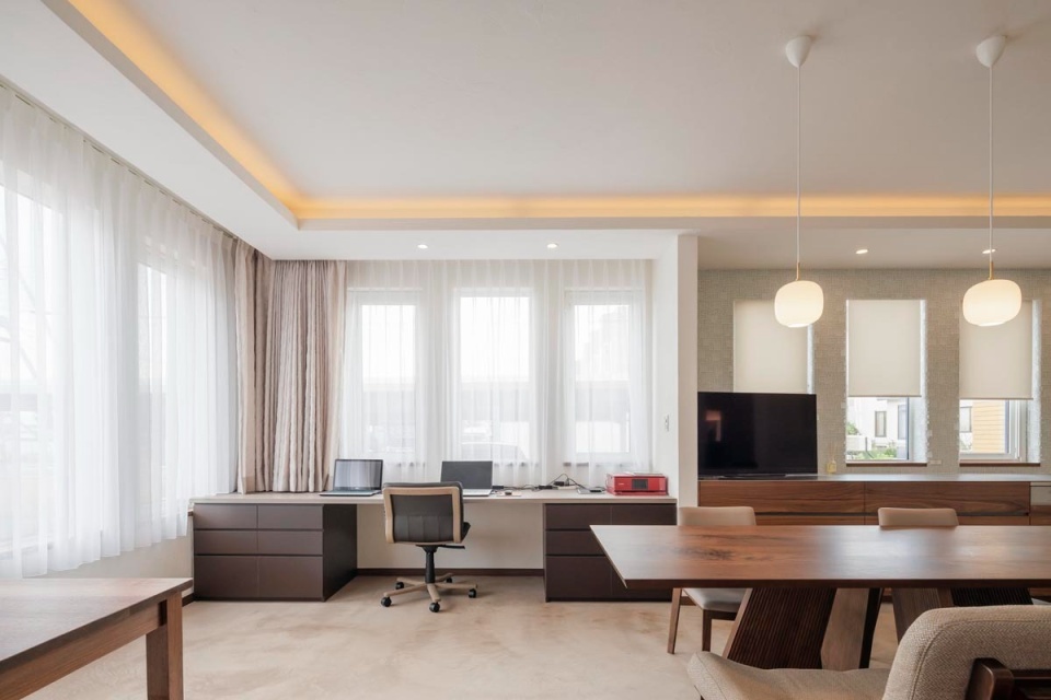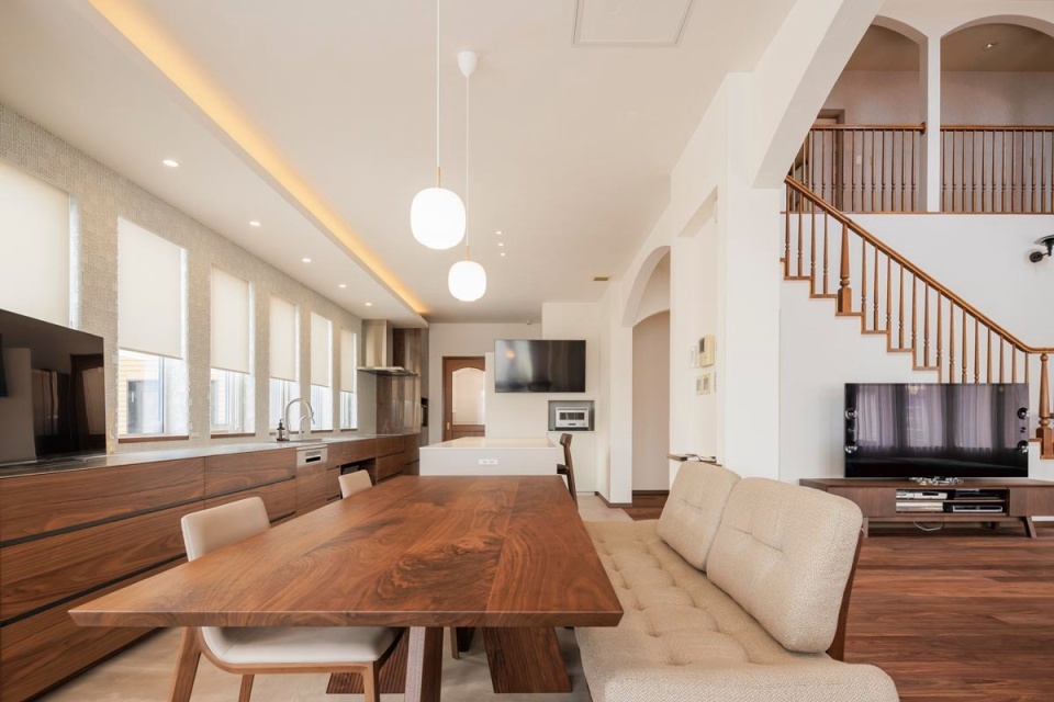 ダイニングテーブルは旭川の家具ブランドCondeHouse(カンディハウス)のもの。空間をより魅力的に見せる家具や照明などインテリアの提案も、YOTUMOKU-sideの得意分野です。