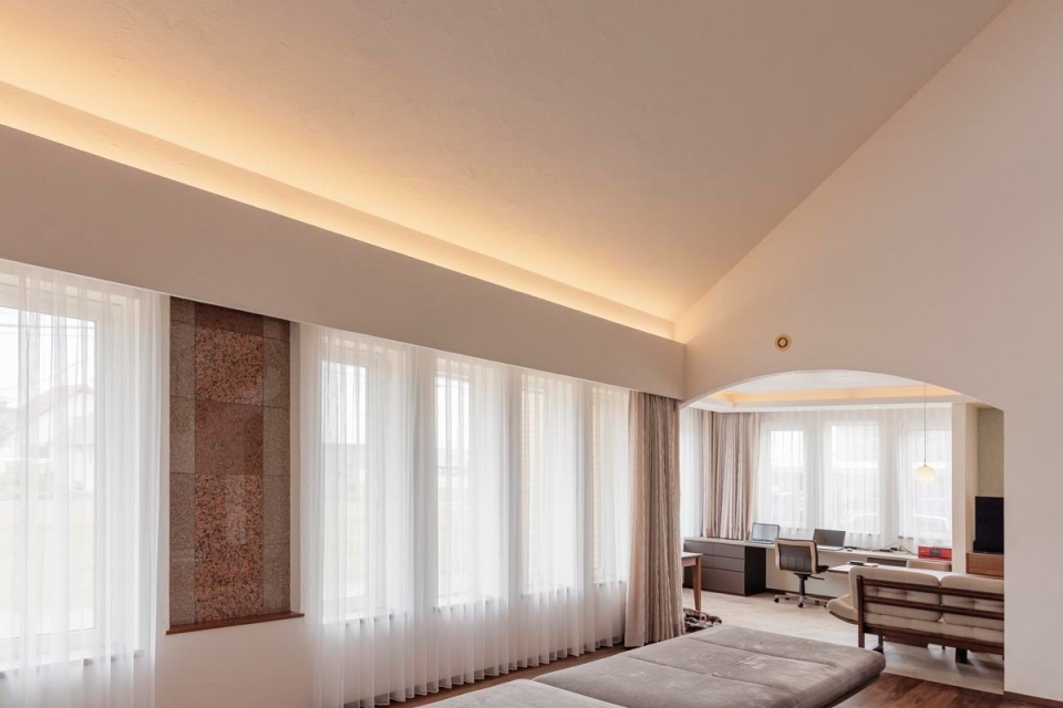 電動で動くよう施工したカーテンはマナトレーディング(東京)のもの。インテリアはすべてコーディネーターの片山さんと選びました。