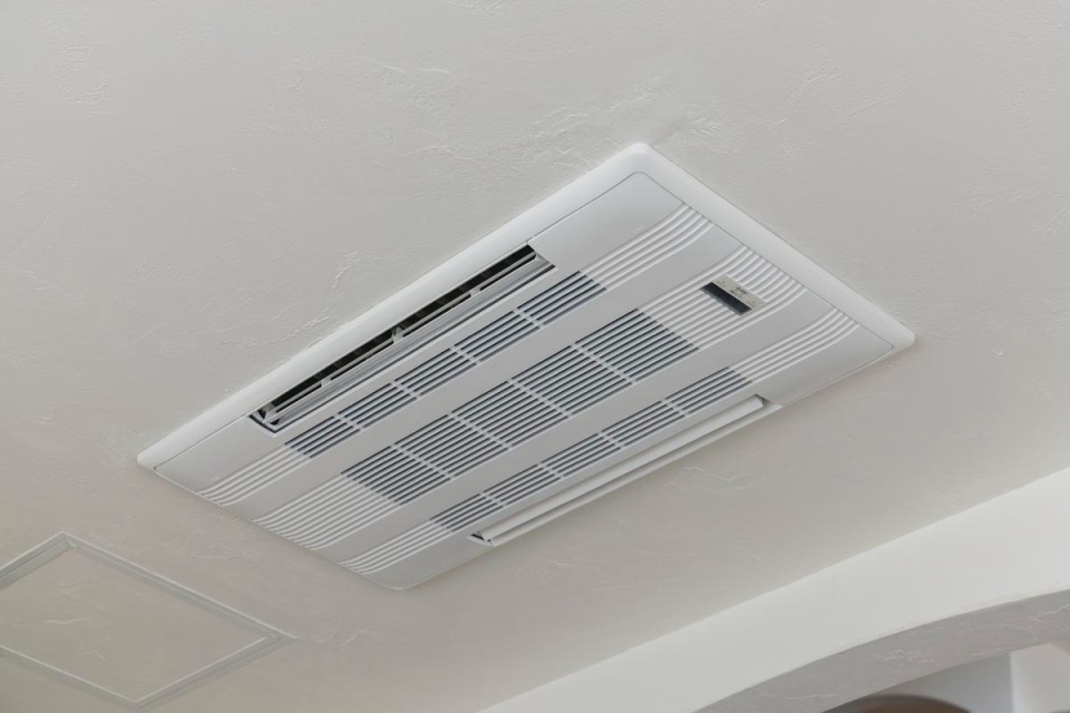 エアコンは存在感が目立たない天井埋め込み式に変更。美しく収まっています。