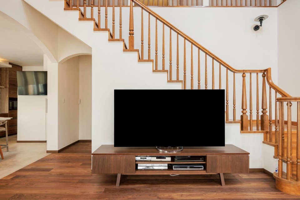 テレビ台(CondeHouse)はコード類の入り口を指定した特注です。