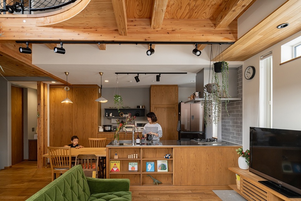 ダイニングと横並びになったキッチンは造作の背面収納も充実しており、生活感が出てしまいやすいキッチン周りをキレイに保つことができます。