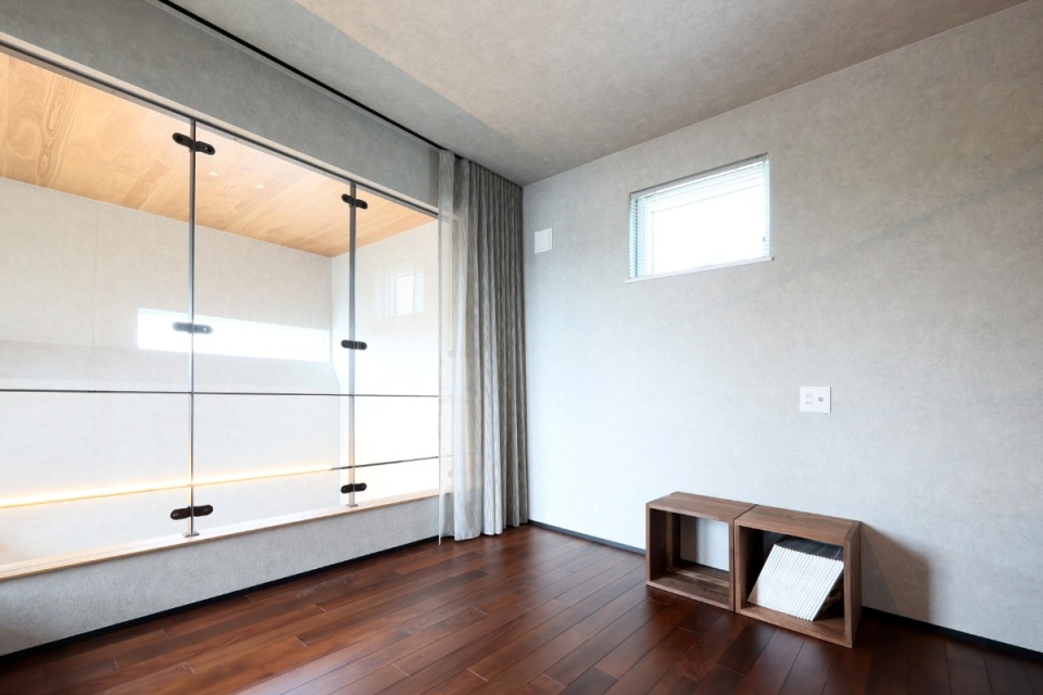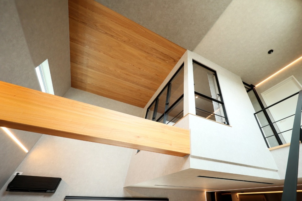デスクを置いて座った時にちょうど目線の高さにくる吹き抜け窓は、四季折々の景色を楽しむことができる採光窓です。