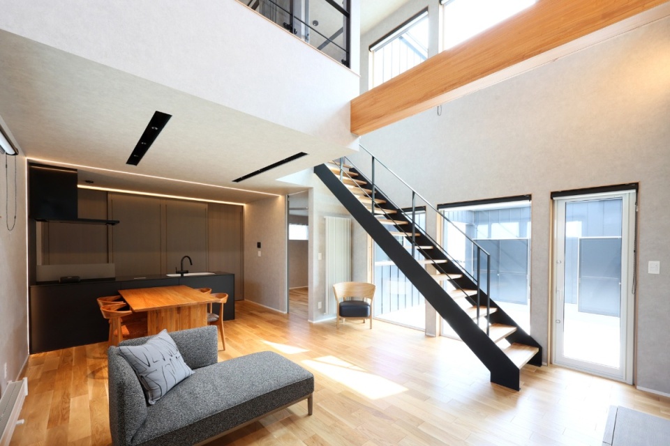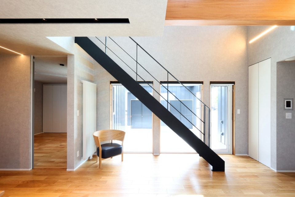 林さん これまでの昭和木材の家では、女性目線で家事がしやすい回遊動線の間取りを多く提案してきました。デザインも欧風モダンやナチュラル、和風モダンが多かったのですが、今回は男性ならではのシンプルでダイナミックな空間変化を楽しめる設計になっています。