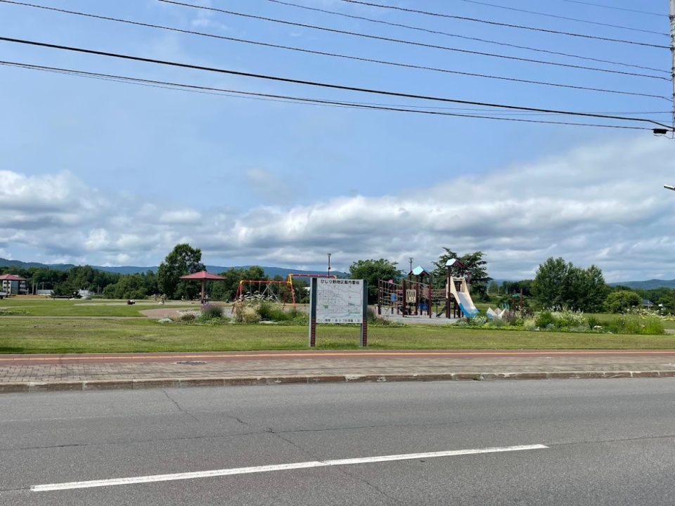 モデルハウスは「ひじり野西公園」の正面にあり、晴れた日には大雪山の山並みを望むことができる自然豊かな場所です。