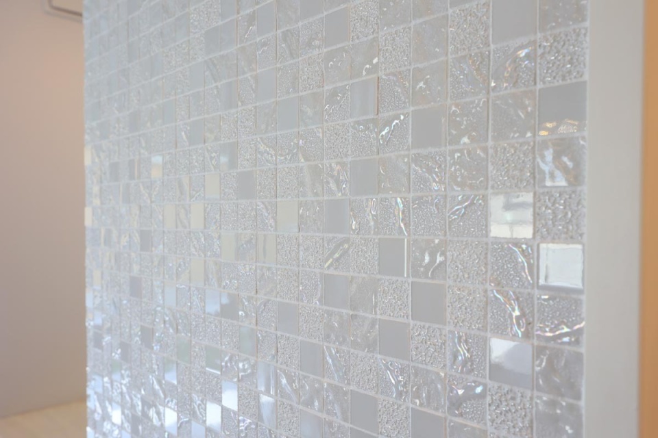 一部の壁にはキラキラ輝くモザイクタイルも採用。