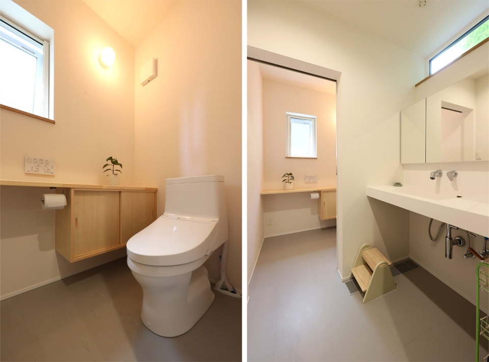 洗面台とミラーボックスはサンワカンパニー製を採用。シンプルなデザインで、掃除のしやすさを実感したそうです。