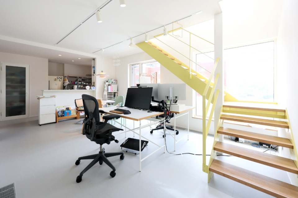 ご主人 仕事中でもすぐに洗濯物を干しにいけるなど、フロアを移動せずに仕事と家事が進められる点が便利ですね。在宅ワークなので、1・2階でオンとオフを切り替えられる造りにしました。